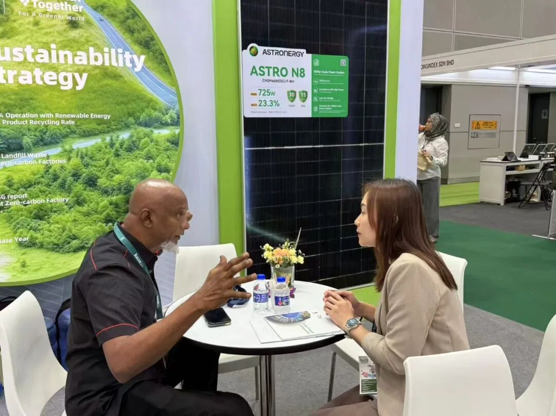 本次展会上,尊龙凯时新能精准把握当地市场多样化产品解决方案需求,集中展示了包括ASTRO N7 2.0、ASTRO N8等在内的产品矩阵。针对马来西亚复杂多变的地形与气候条件,尊龙凯时新能光伏组件产品通过卓越的场景适应性、高稳定性,赢得参展者的一致认可。